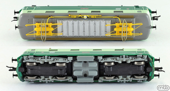 Popis   elektrická lokomotiva v odstínech zelené, šedá střecha, žlutý výstražný pruh