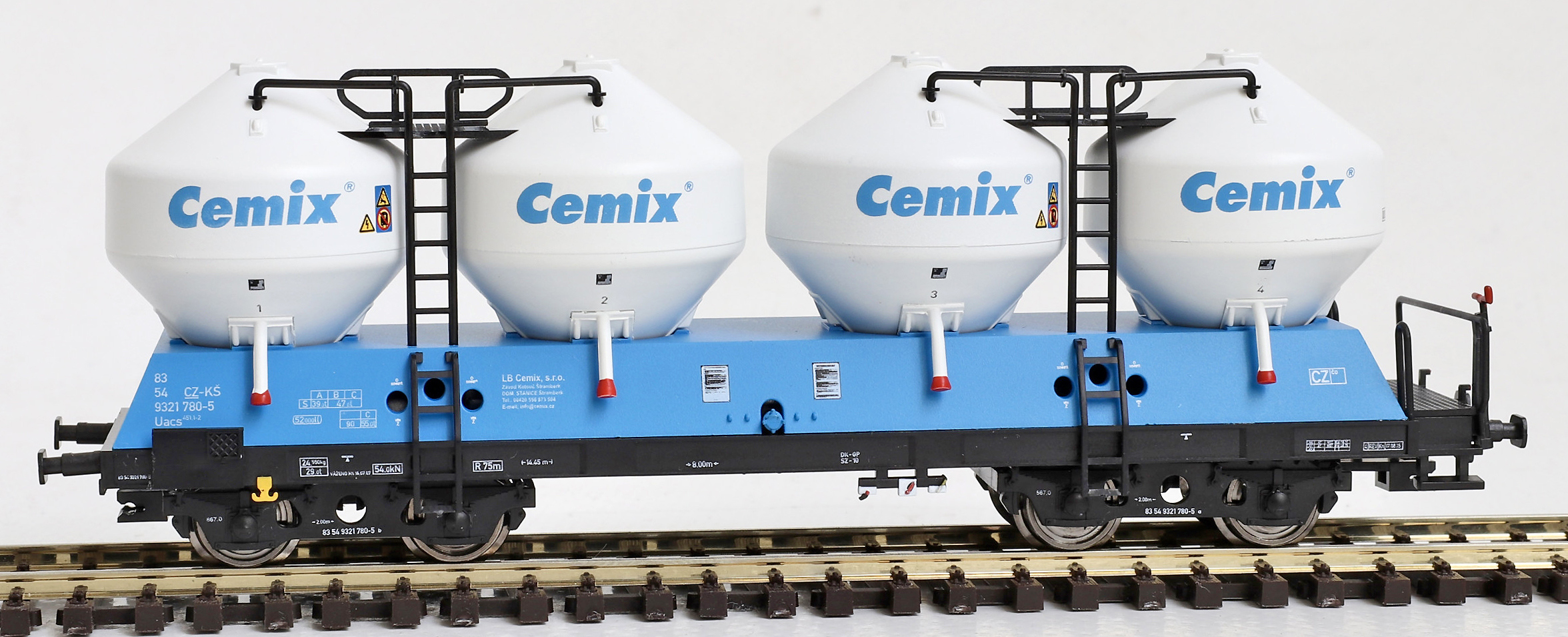 měřítko 1:120 - rozchod kolejí 12 mm kinematika krátkého spřáhla (KKK) podle normy NEM 358 130 mm - celková délka modelu přes nárazníky 4 - celkový počet náprav nebo rozložení náprav