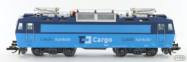 | elektrická lokomotiva v modrém barevném schematu „ČD Cargo“ |