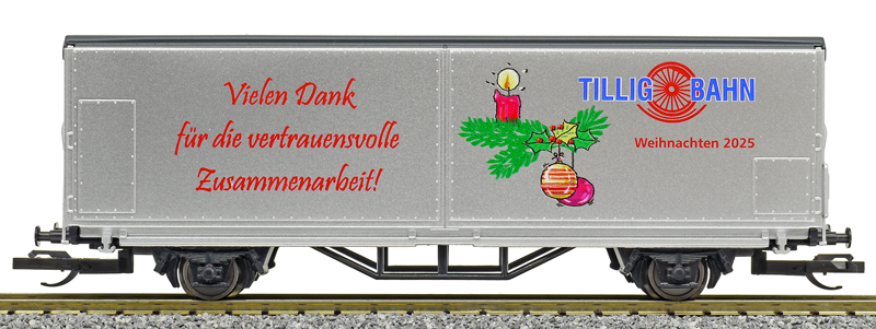 Popis   nákladní vůz s posuvnými bočnicemi světle stříbrný „Danke 2025“