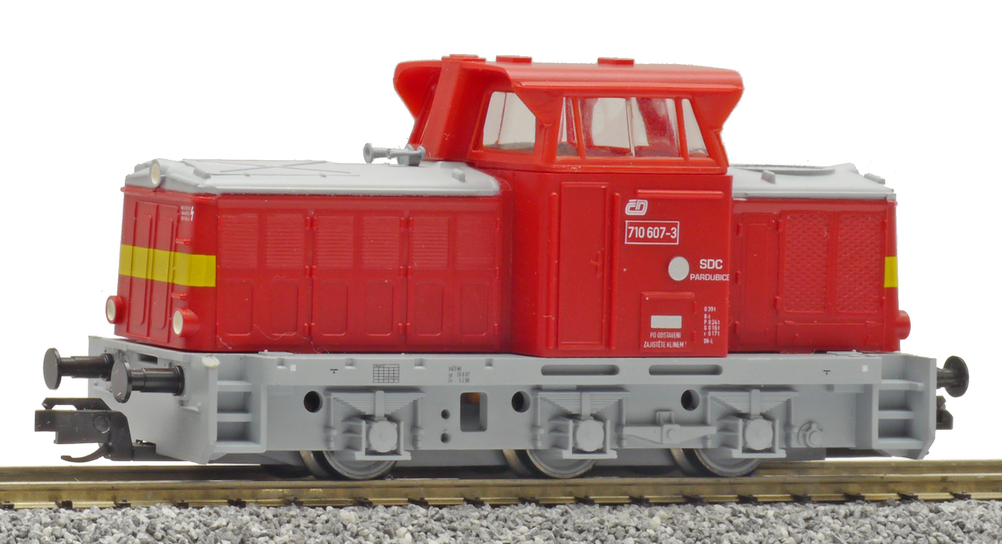 Popis   dieselová lokomotiva červená s šedým pojezdem a výstražným žlutým pruhem