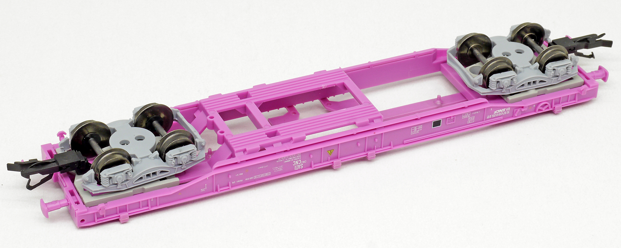 měřítko 1:120 - rozchod kolejí 12 mm kinematika krátkého spřáhla (KKK) podle normy NEM 358 138 mm - celková délka modelu přes nárazníky 4 - celkový počet náprav nebo rozložení náprav