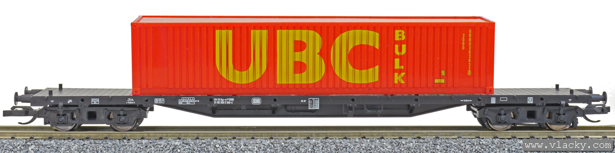 | nákladní plošinový vůz černý s jedním kontejnerem 40' „UBC“ |