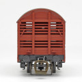 | nákladní vůz na přepravu drobného zvířectva červenohnědý s tmavě hnědou střechou a s brzdařskou budkou |