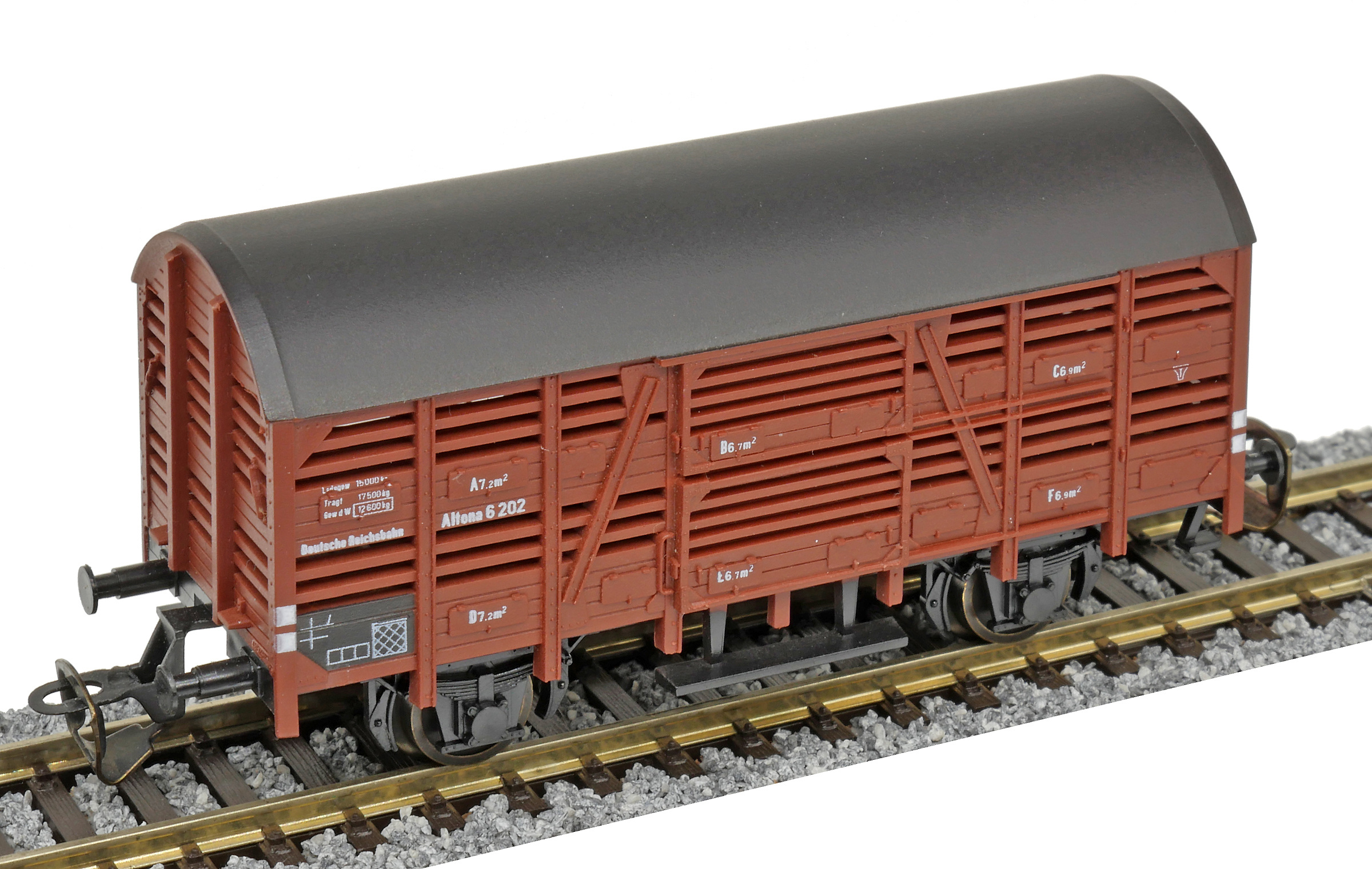 nákladní vůz na přepravu drobného zvířectva červenohnědý s černou střechou