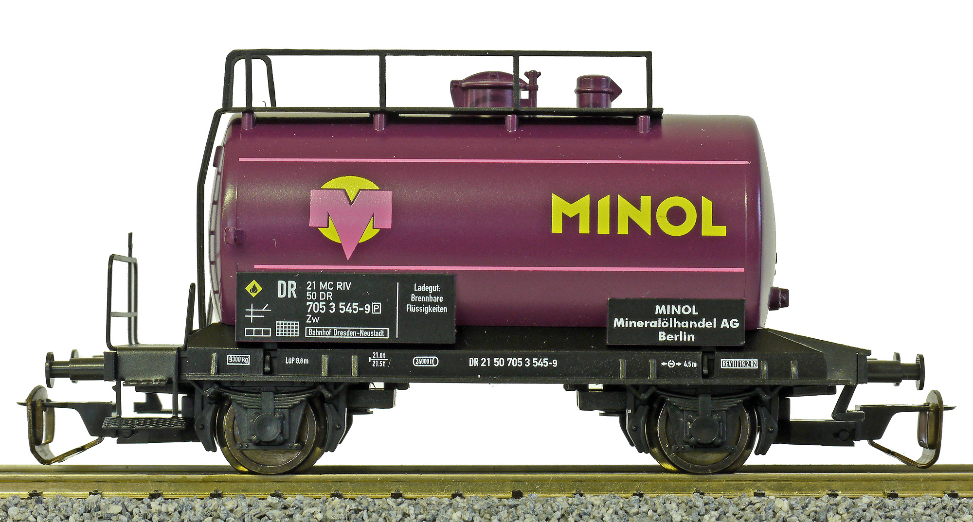 | cisternový vůz fialový s černým rámem „MINOL“ |