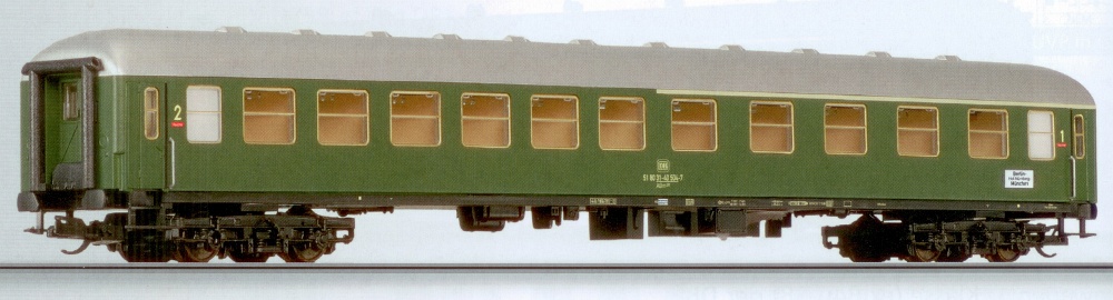 | rychlíkový vůz zelený s šedou střechou 2. tř. |