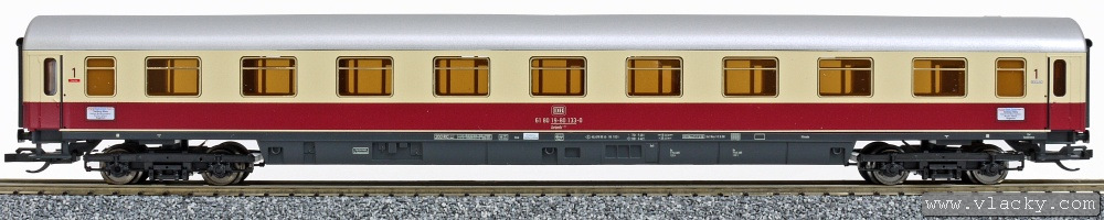 | vínově červený-krémový se stříbrnou střechou oddílový vůz 1. tř. |