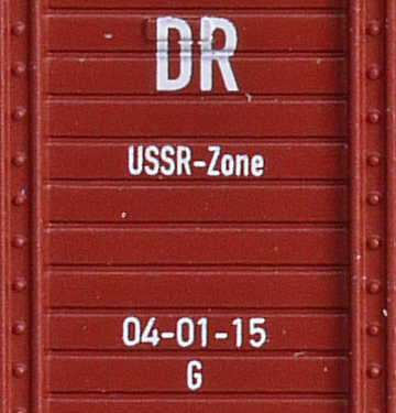 Popis   krytý nákladní vůz červenohnědý s tmavě šedou střechou „USSR-Zone“