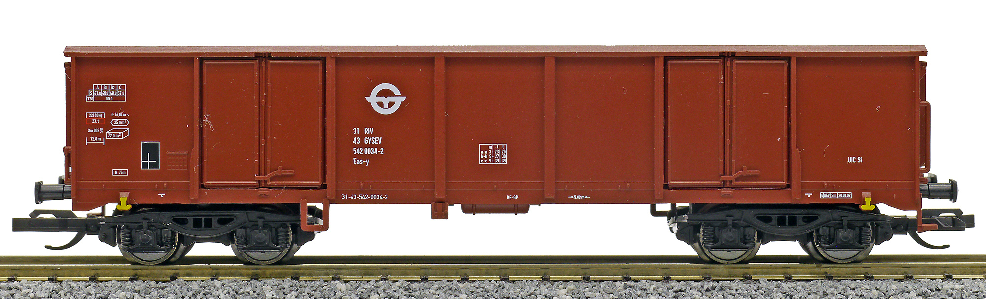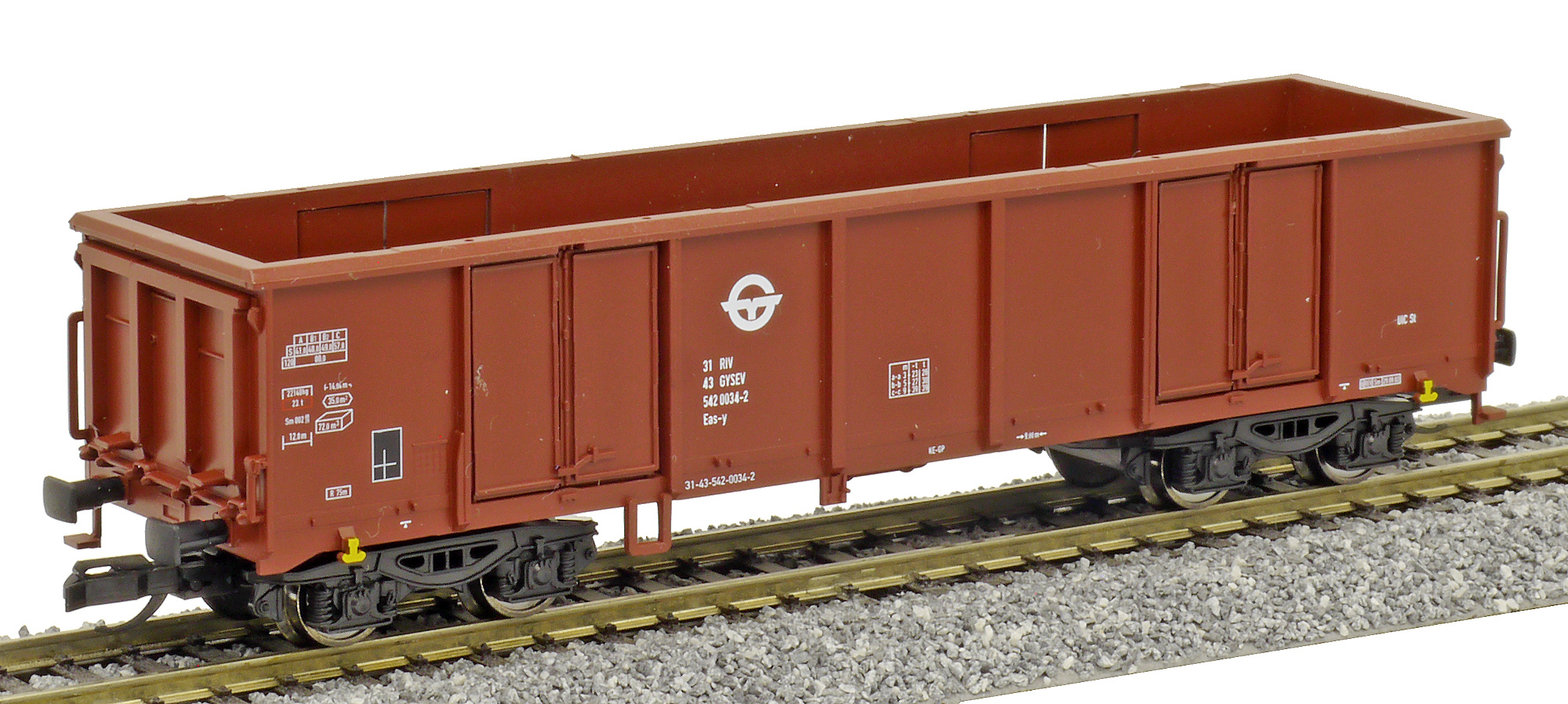 | • 31 43 542 0034-2 | → | nákladní, s podvozky, pevný rozchod, ve vlastnictví železniční správy, RIV, PPV |