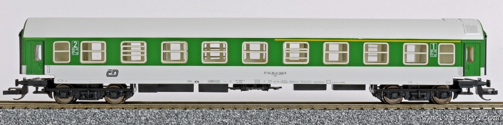 | rychlíkový vůz zelený-bílý se světle šedou střechou 2. tř. |