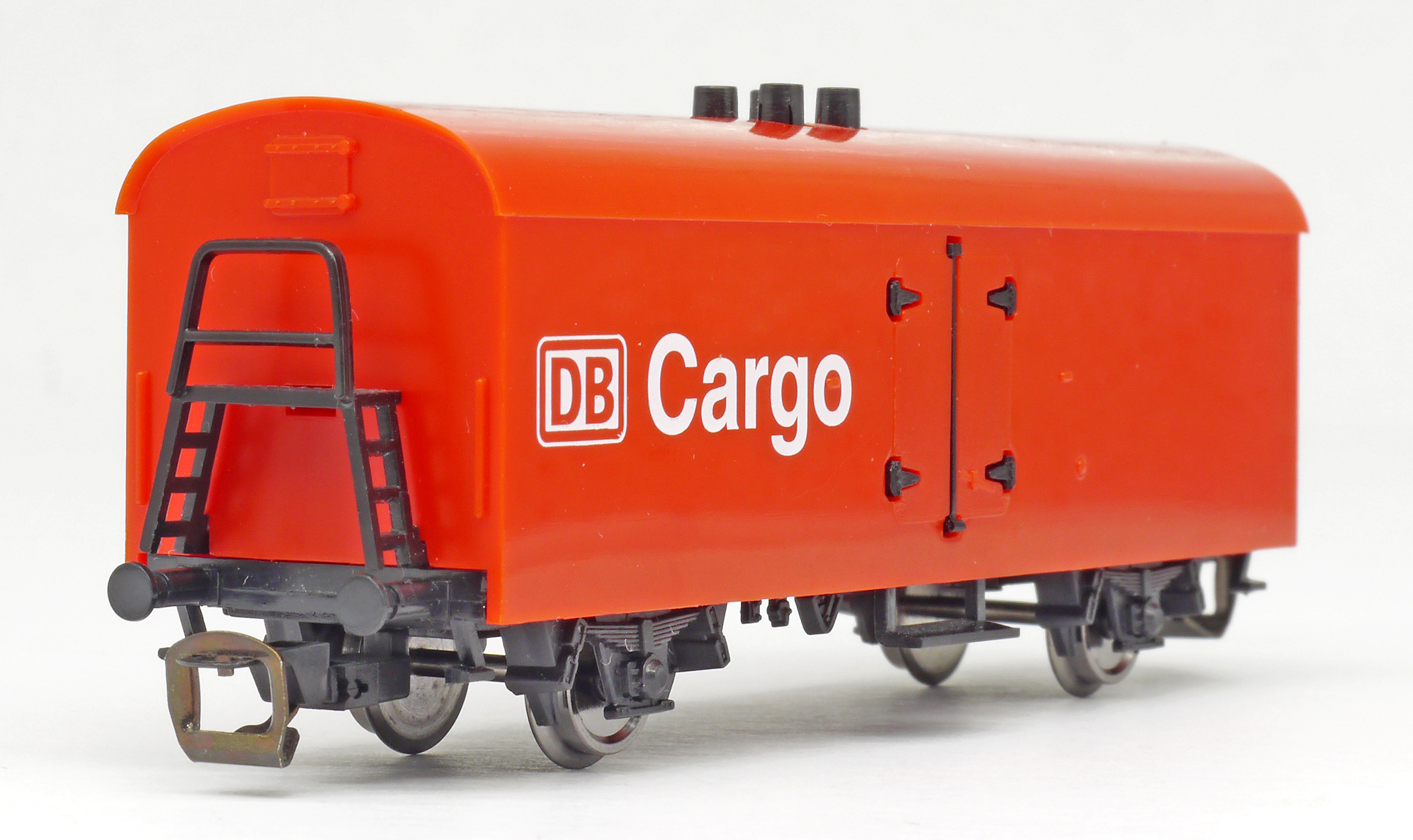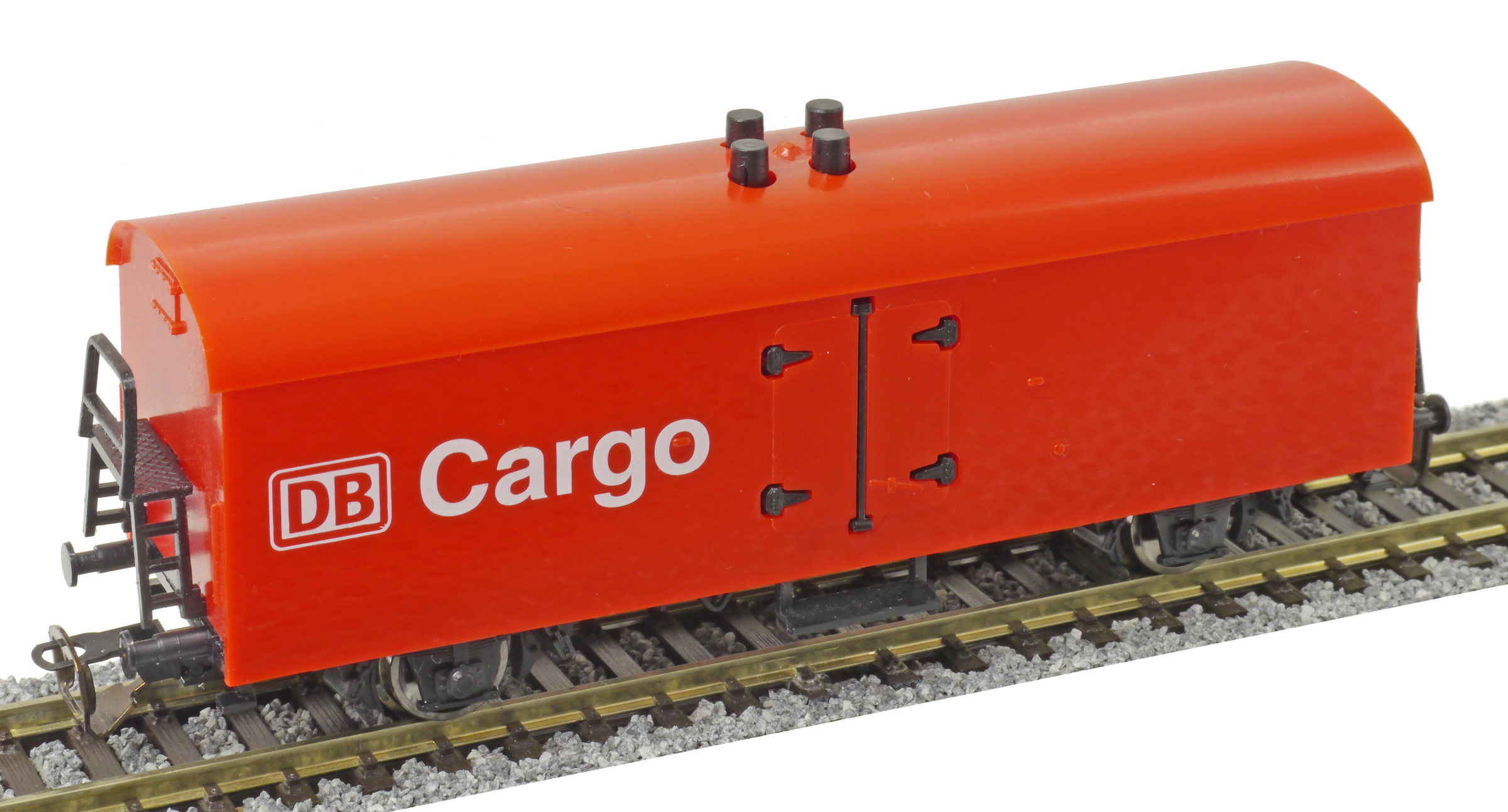 Popis   nákladní chladící vůz červený v barvě plastu „DB Cargo“