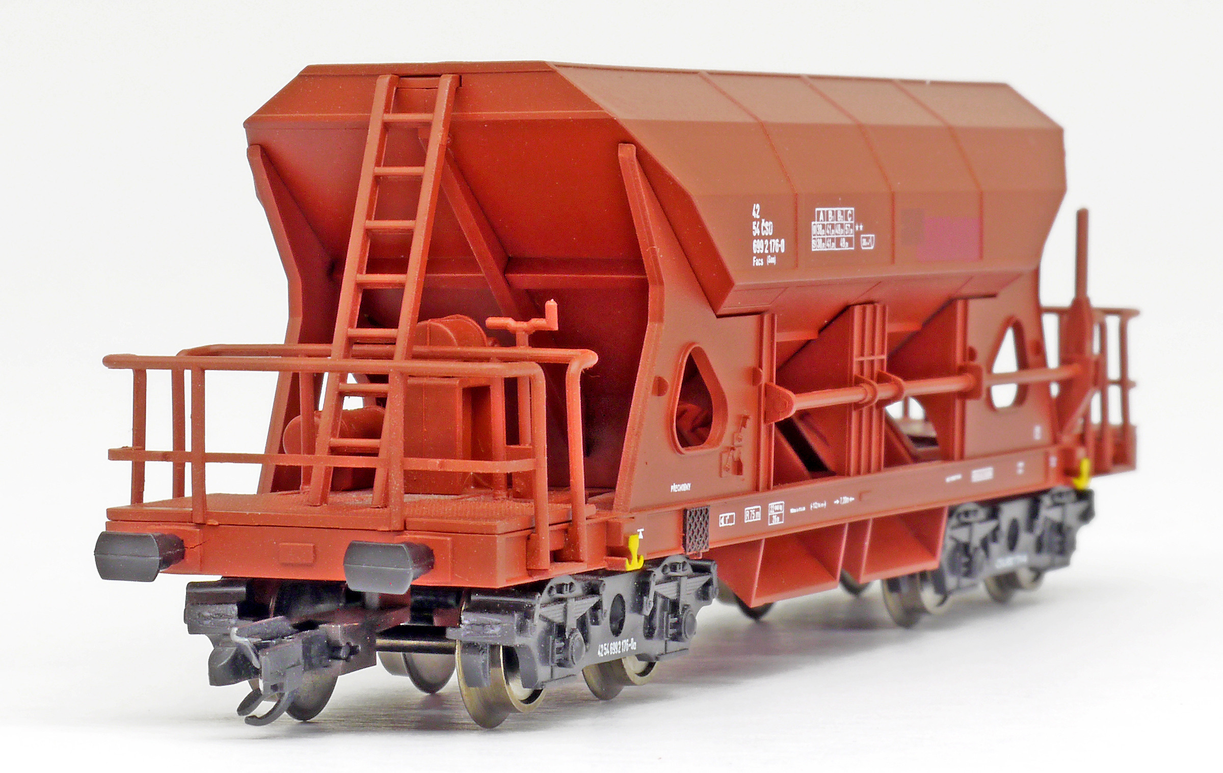 | nákladní samovýsypný vůz červenohnědý s opravnými fleky |