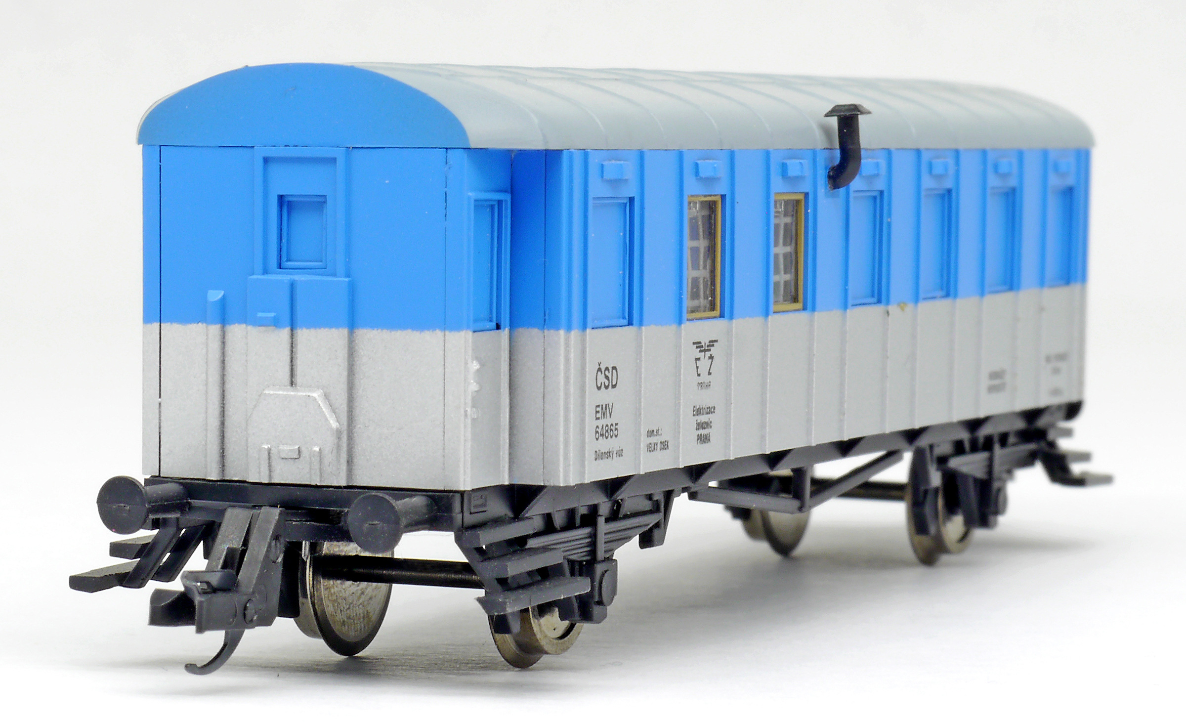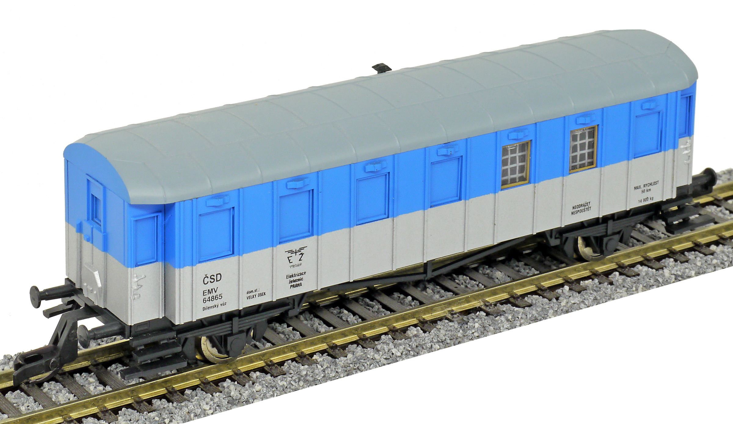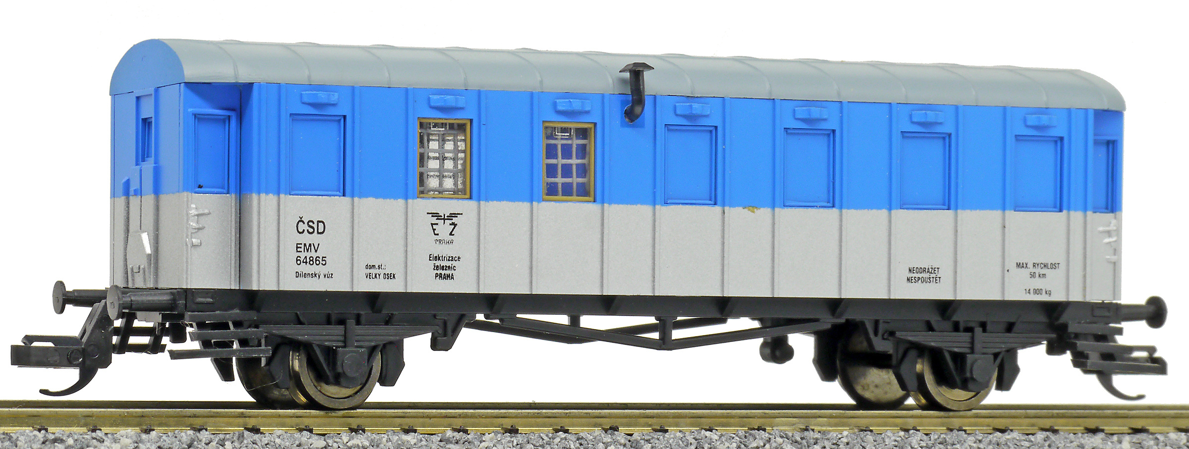 | dílenský vůz modrý-stříbrný s šedou střechou „Elektrizace železnic“ |