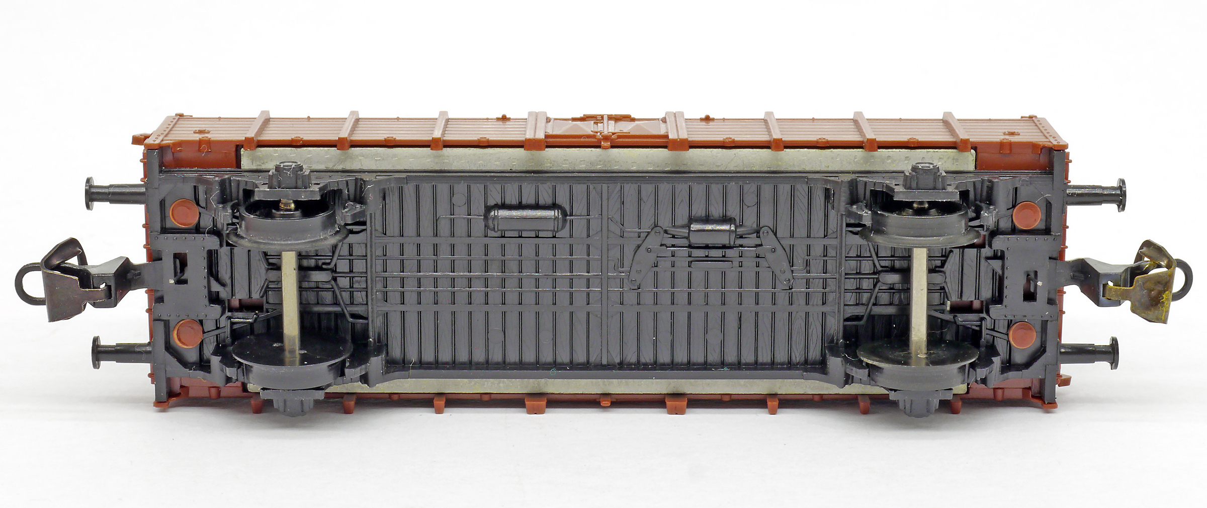 měřítko 1:120 - rozchod kolejí 12 mm nenormované uchycení spřáhla 91 mm - celková délka modelu přes nárazníky