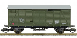 | krytý nákladní vůz zelený s šedou střechou do pracovního vlaku |