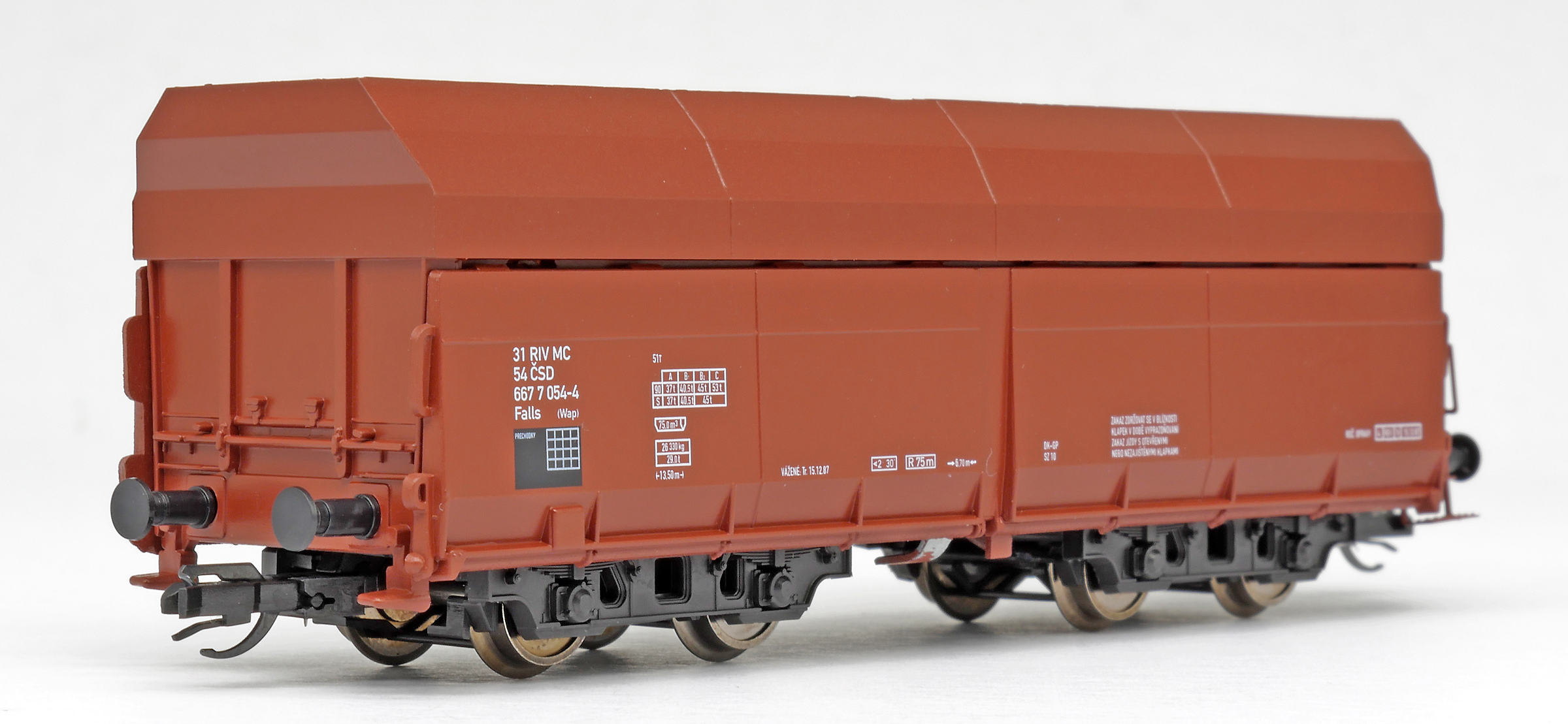 | • 31 54 667 7 054-4 | → | nákladní, s podvozky, pevný rozchod, ve vlastnictví železniční správy, RIV, PPV |