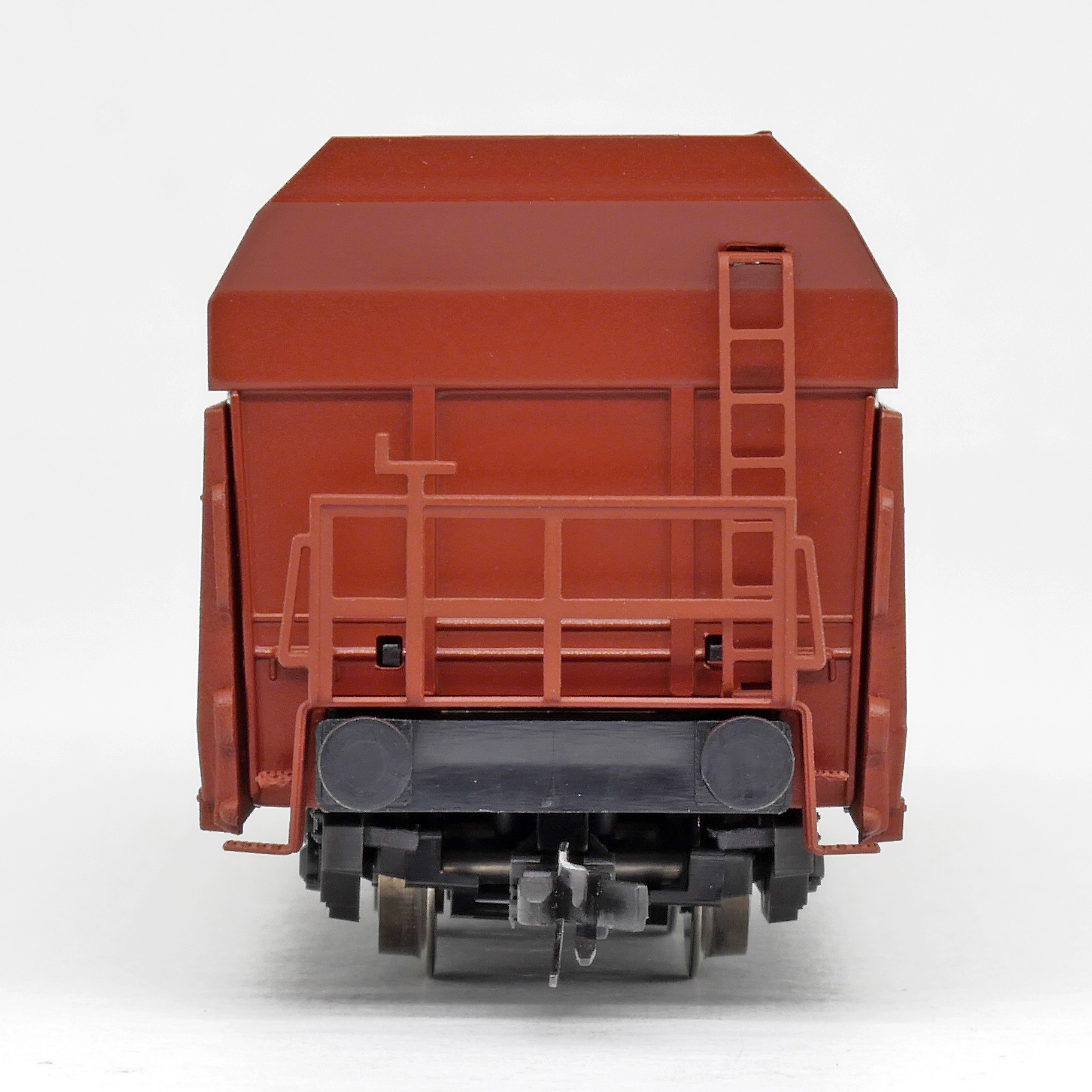 | nákladní samovýsypný vůz červenohnědý s opravnými fleky |