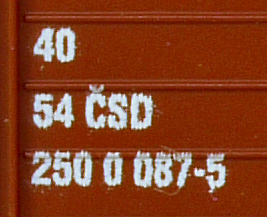 | • 40 54 250 0 087-5 | → | ČSD - Československé státní dráhy |