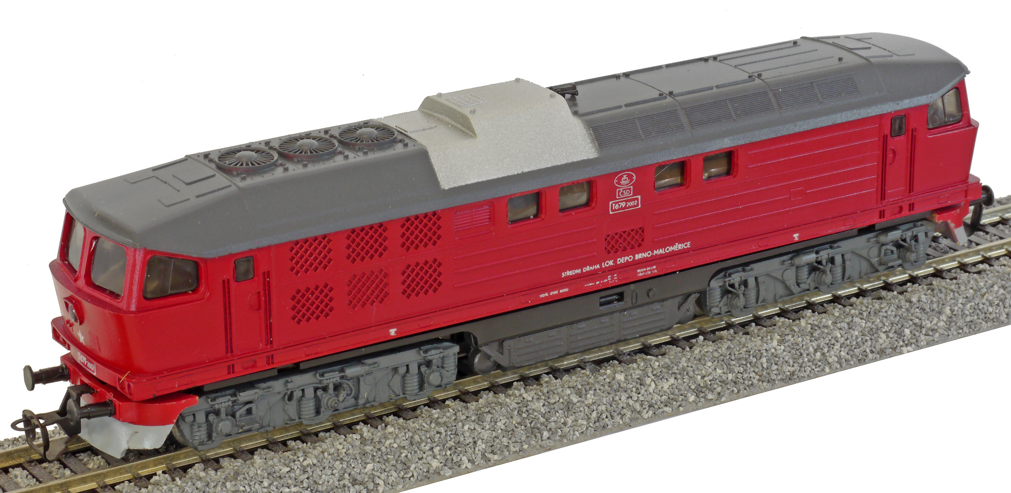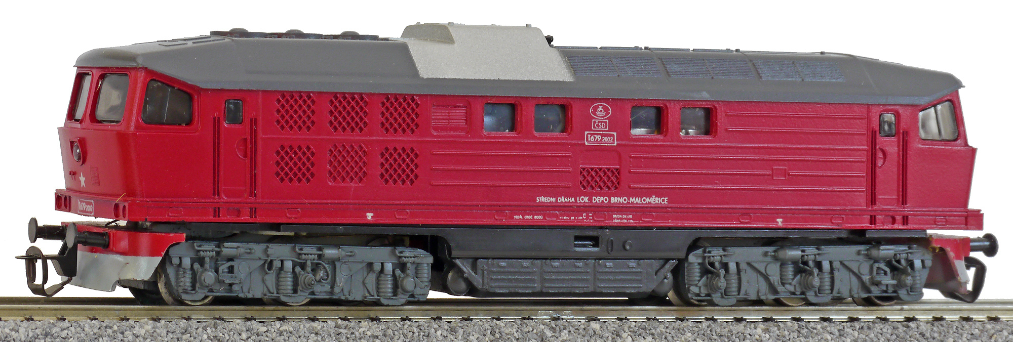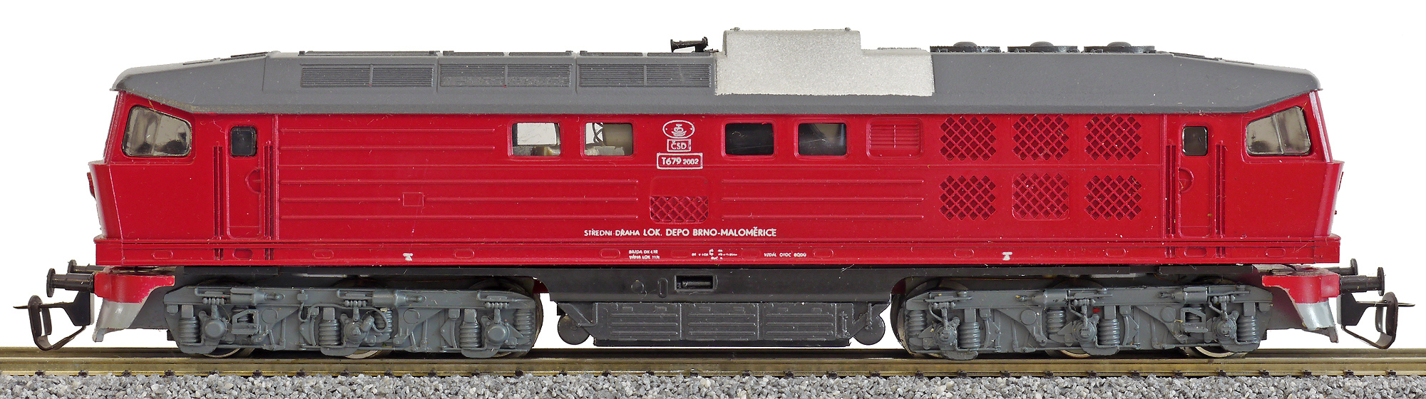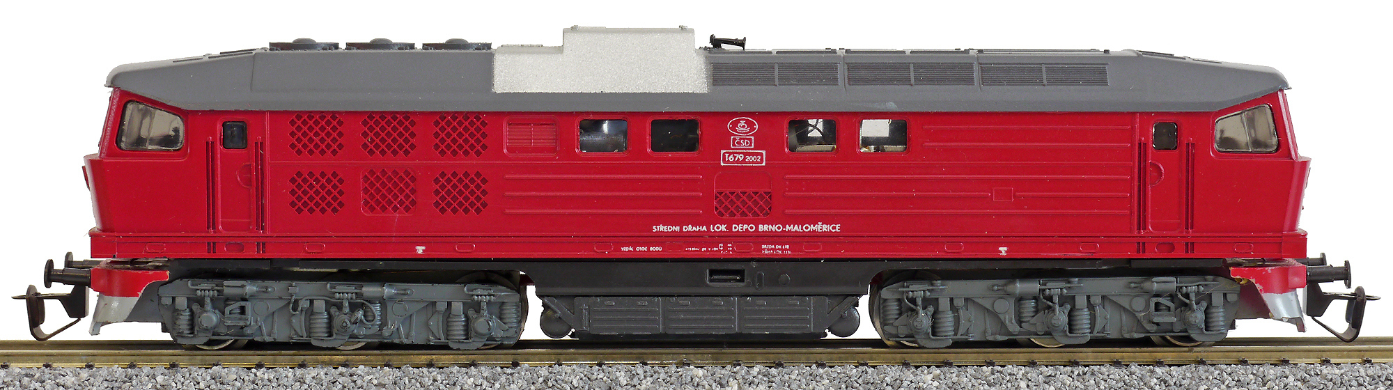 Popis   dieselová lokomotiva vínově červená s tmavě šedou střechou T 679