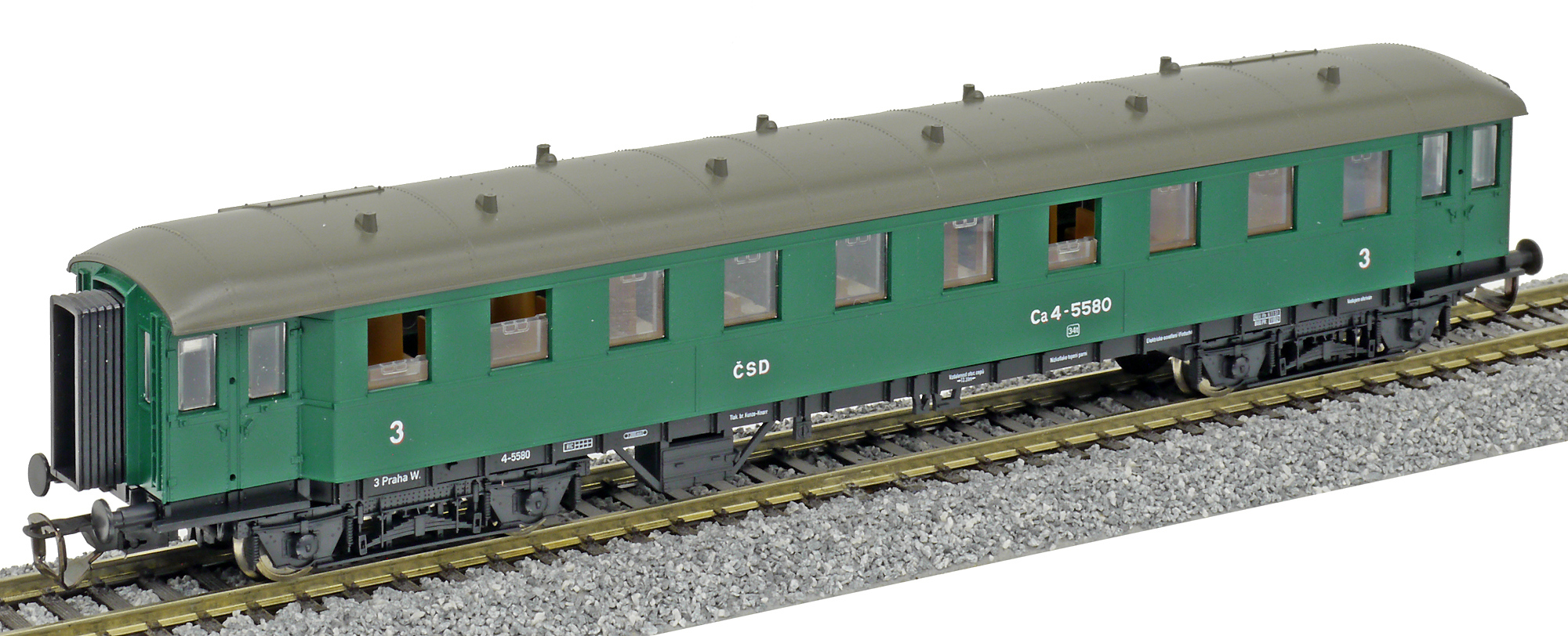 | osobní vůz zelený s šedou střechou 3. tř. |