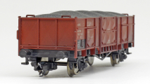 | otevřený nákladní vůz červenohnědý s patinou a nákladem |