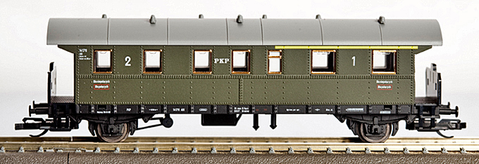 | osobní vůz tmavě zelený s šedou střechou 1./2. tř. |