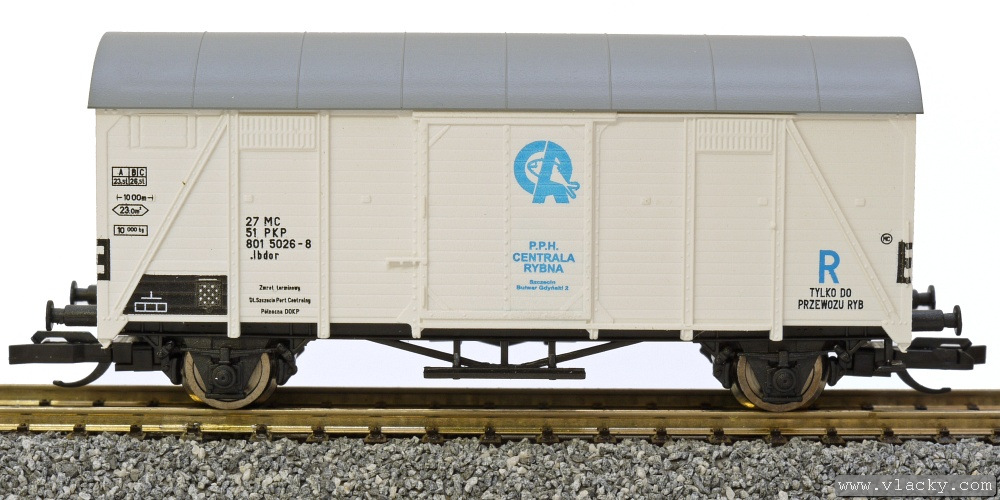 | krytý nákladní vůz bílý s šedou střechou „P.P.H. CENTRALA RYBNA“ |