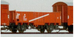 | otevřený nákladní vůz červenohnědý s bílým pásem |
