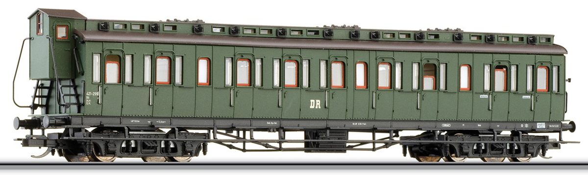oddílový osobní vůz zelený s černou střechou oddílový vůz pruské konstrukce