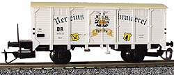 | krytý nákladní vůz bílý s krémovou střechou a brzdařskou plošinou „Apolda“ |