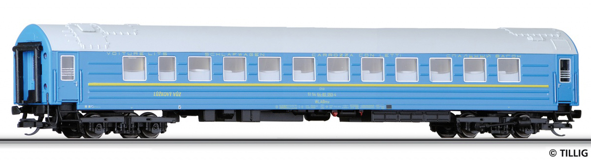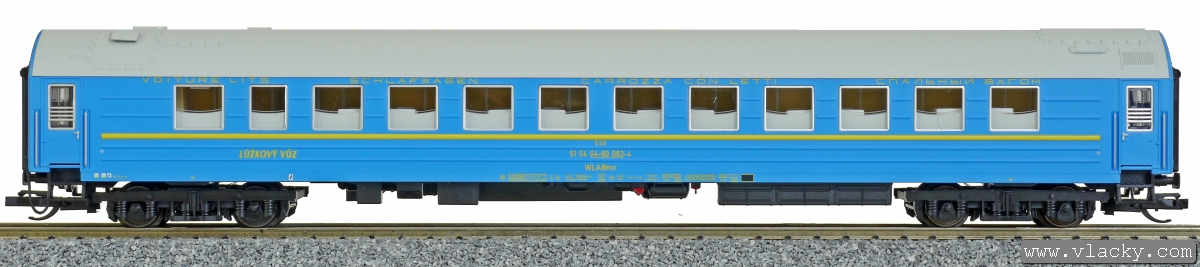 | lůžkový vůz modrý s šedou střechou pro dálkové vlaky |
