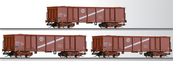 | set tří otevřených vysokostěnných vozů s nákladem uhlí |