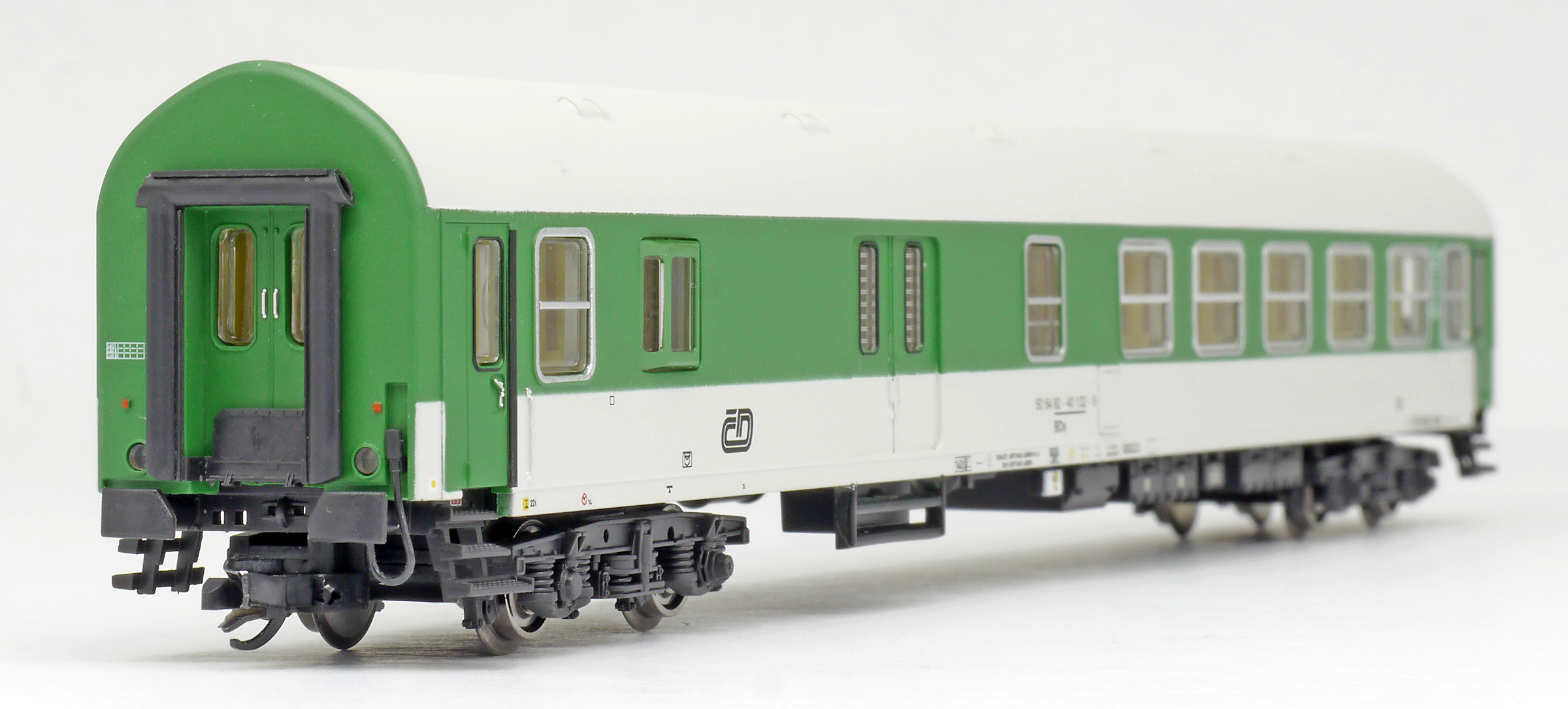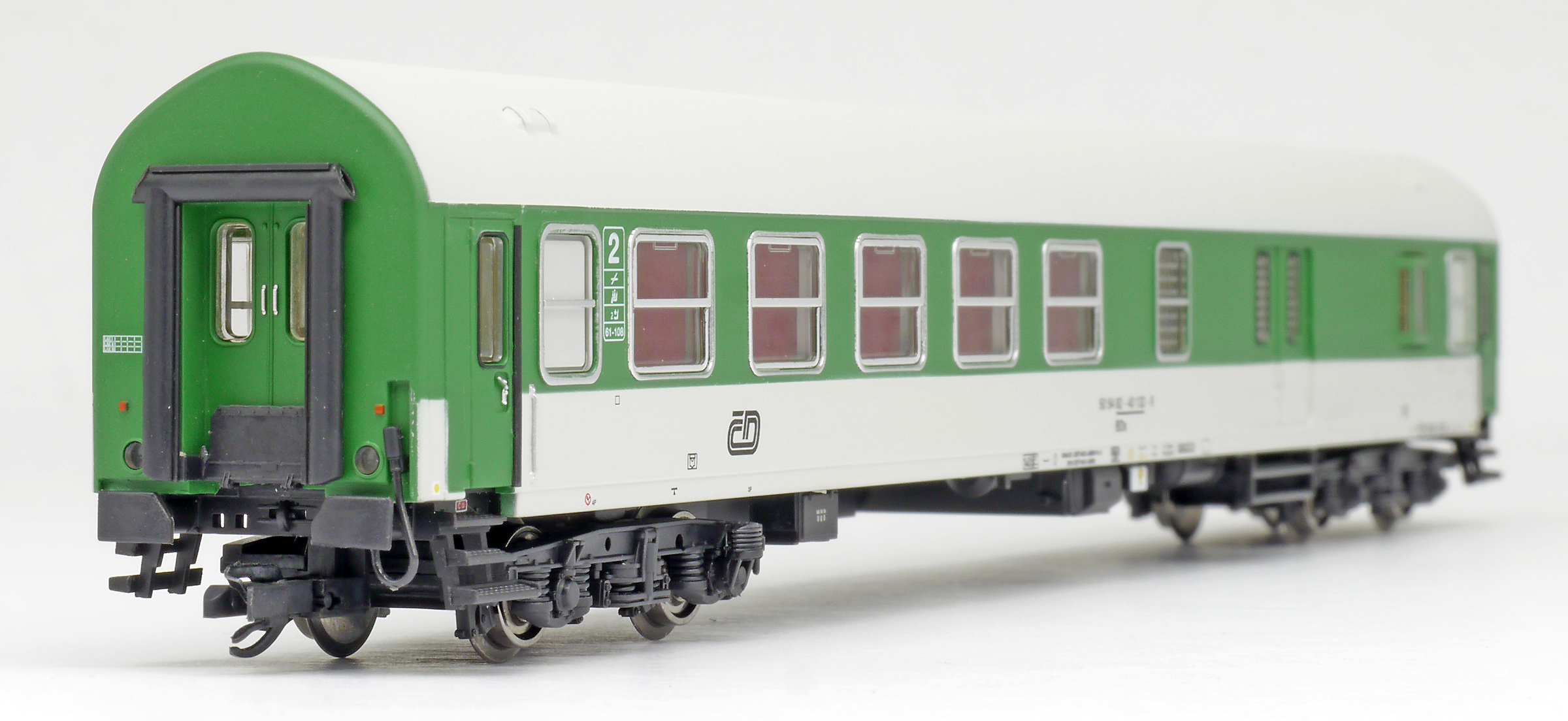 | rychlíkový vůz zelený-světle šedý se služebním oddílem 2. tř. |