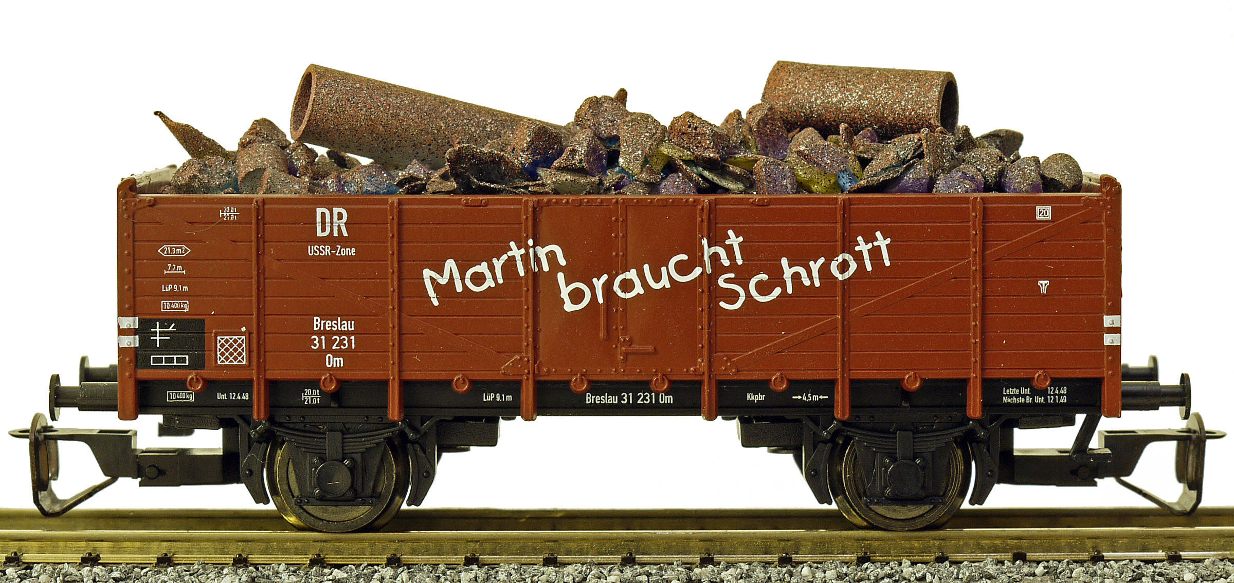 | červenohnědý s nákladem šrotu "Martin braucht Schrott" |