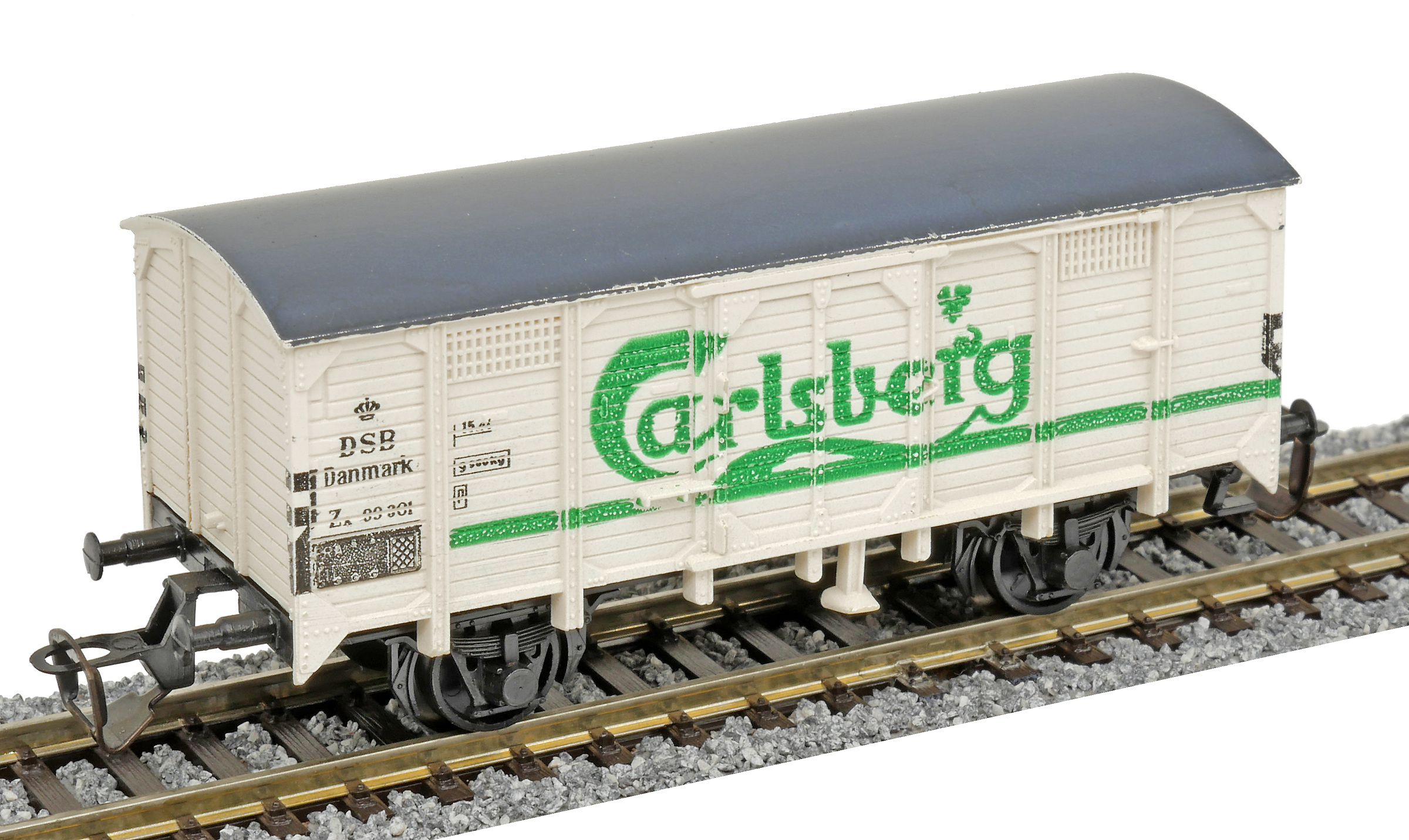 krytý nákladní vůz bílý s šedou střechou „Carlsberg“