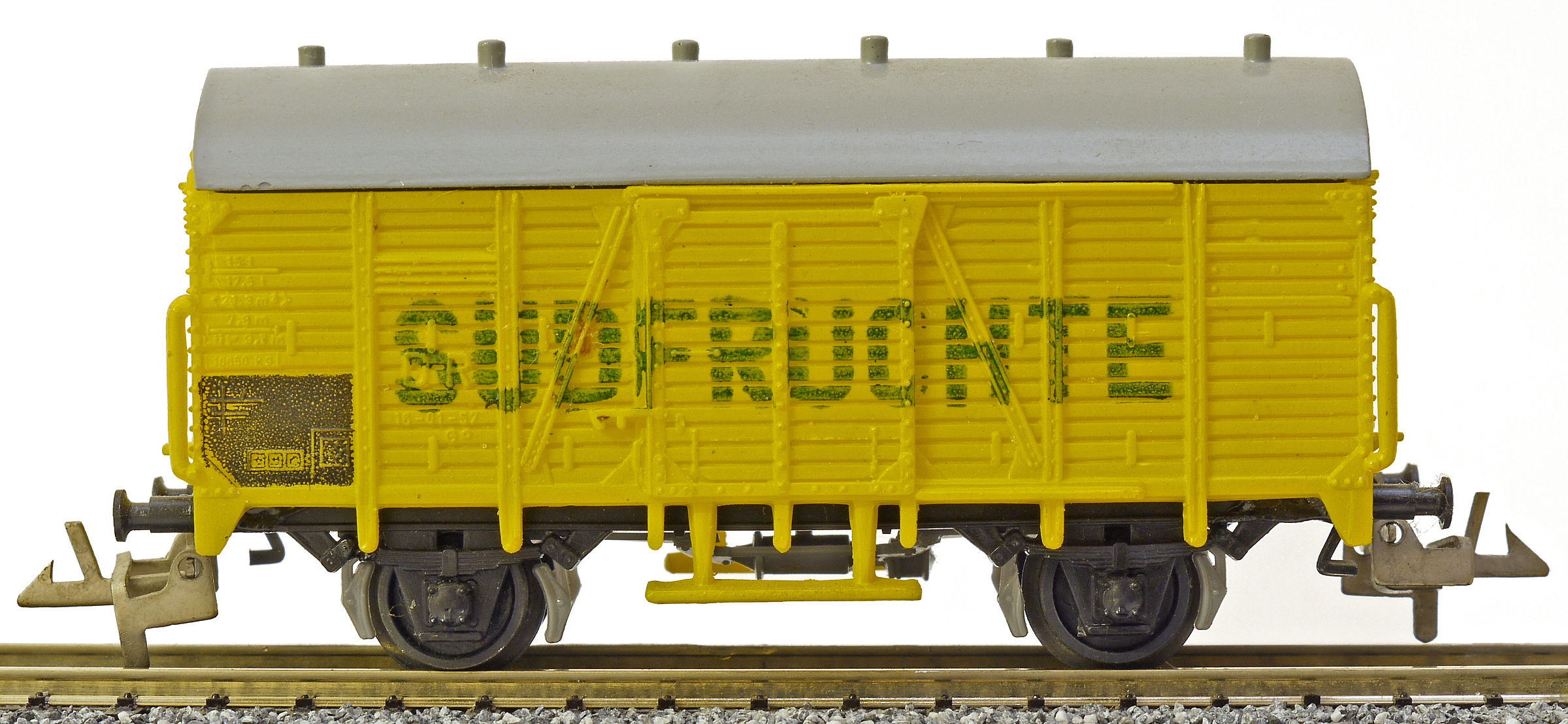 nákladní chladící vůz žlutý s šedou střechou „Südfrüchte“