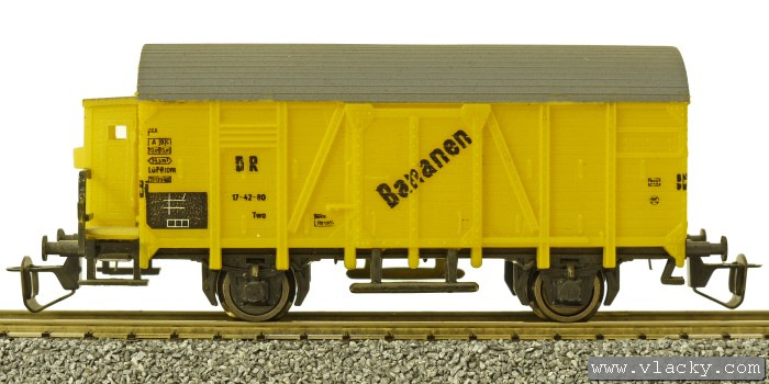 | žlutý s šedou střechou a brzdařskou budkou "Bananen" |