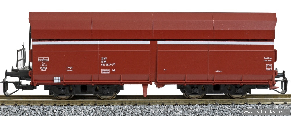 | nákladní samovýsypný vůz červenohnědý s bílým proužkem |