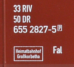 | • 33 50 655 2827-5 | → | DR - Deutsche Reichsbahn |