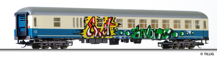 rychlíkový vůz modrý-slonová kost se zavazadlovým oddílem 2. tř.