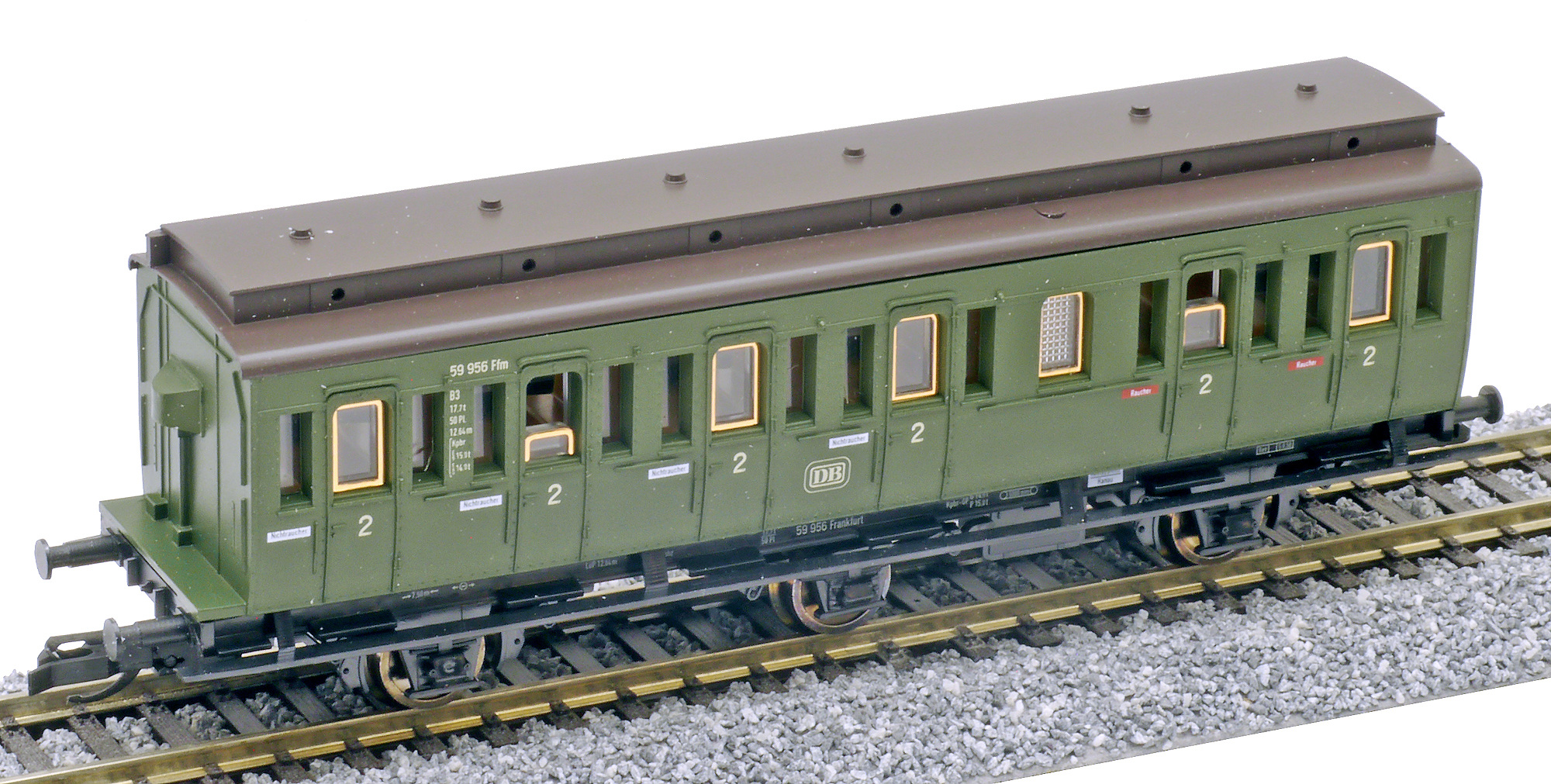 oddílový osobní vůz zelený s černou střechou 2. tř.