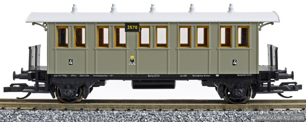 osobní vůz tmavě šedý se světle šedou střechou 4. tř.