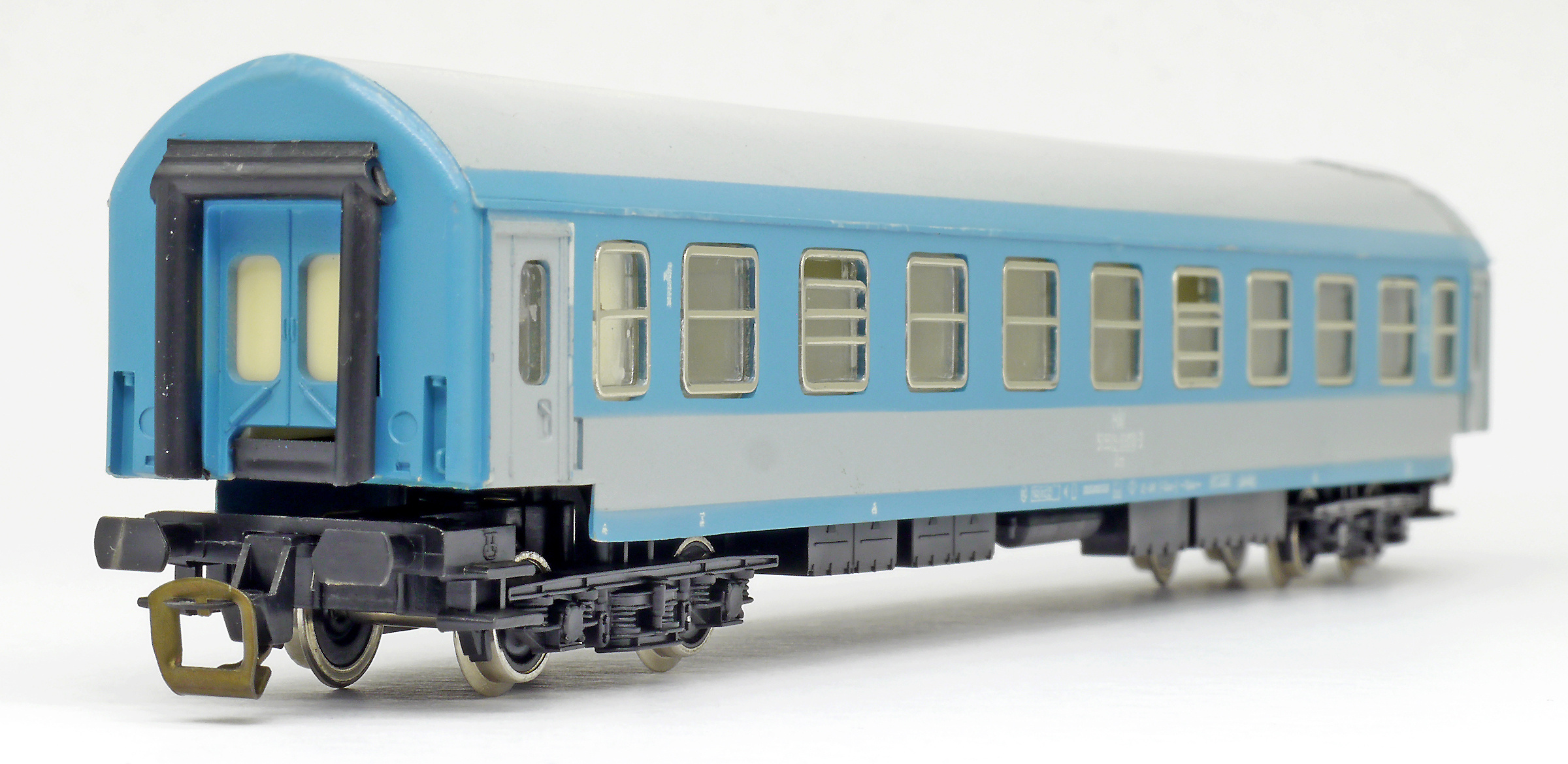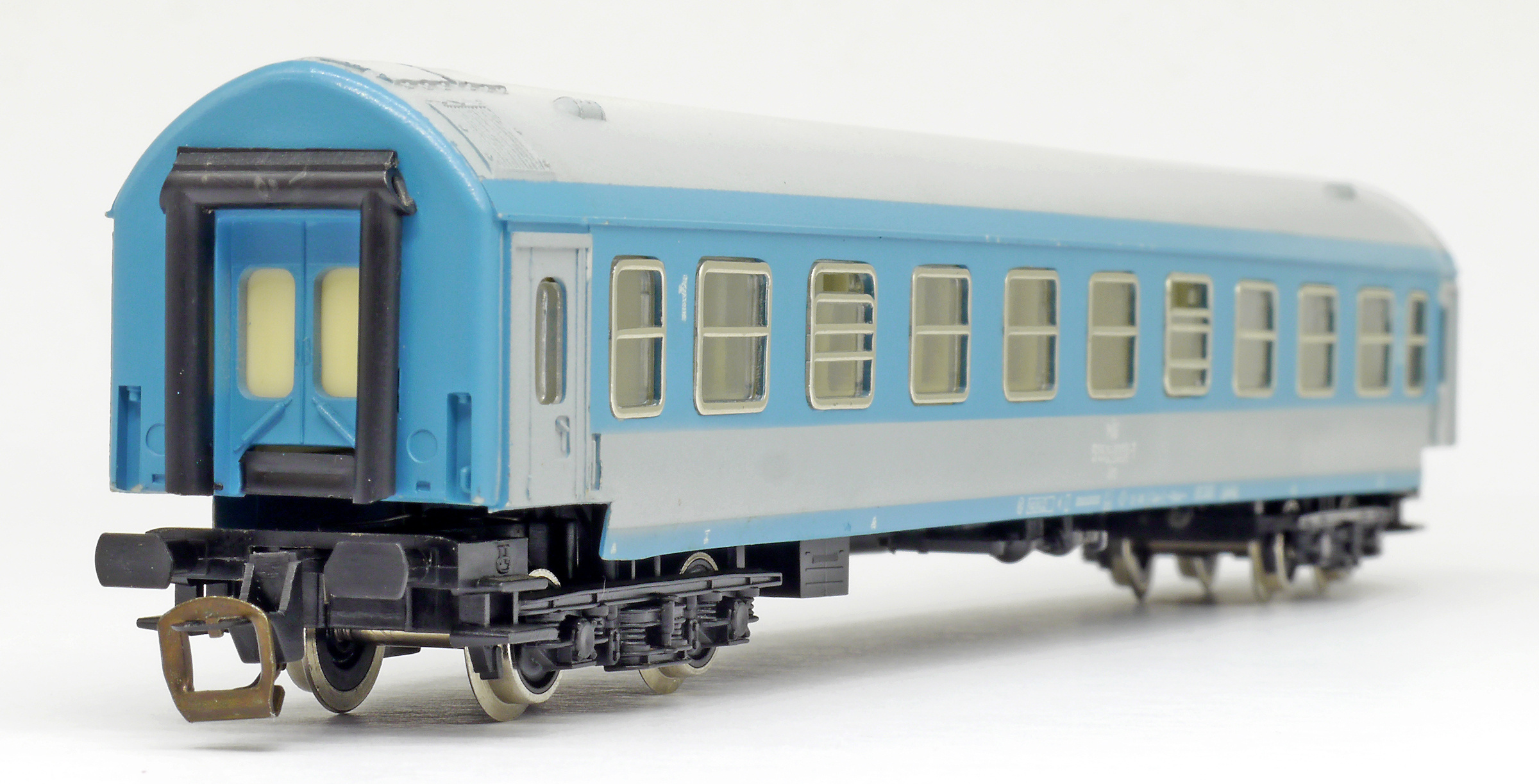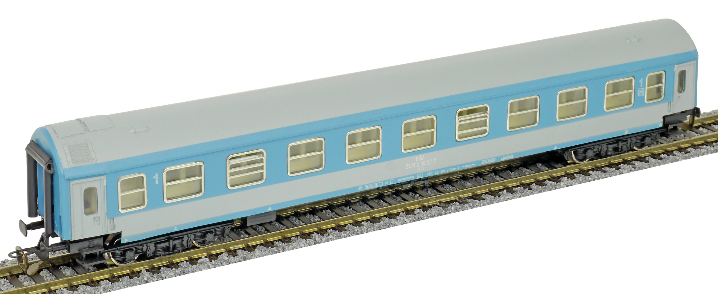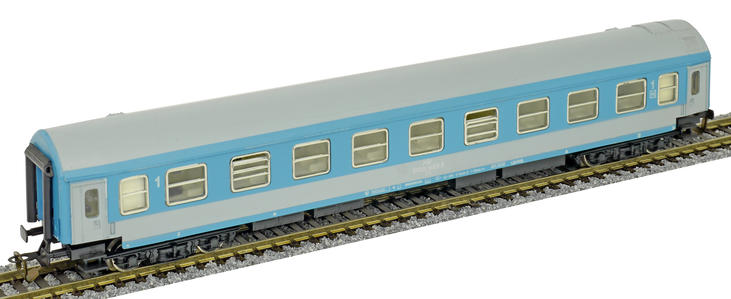 | rychlíkový vůz modrý s šedým pásem a s šedou střechou 1. tř. |
