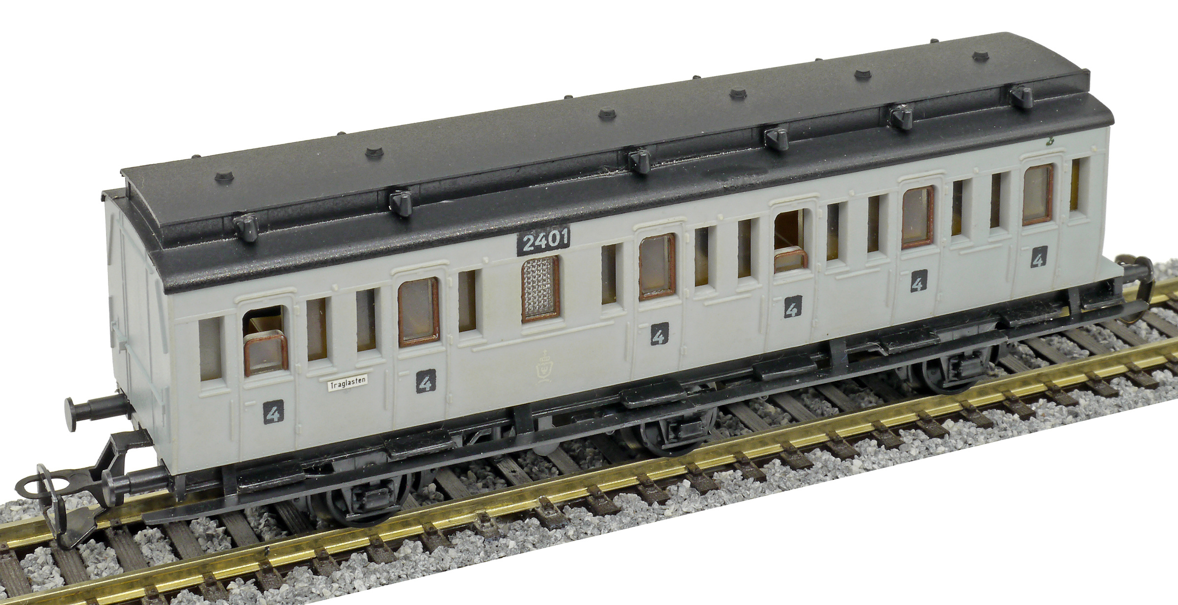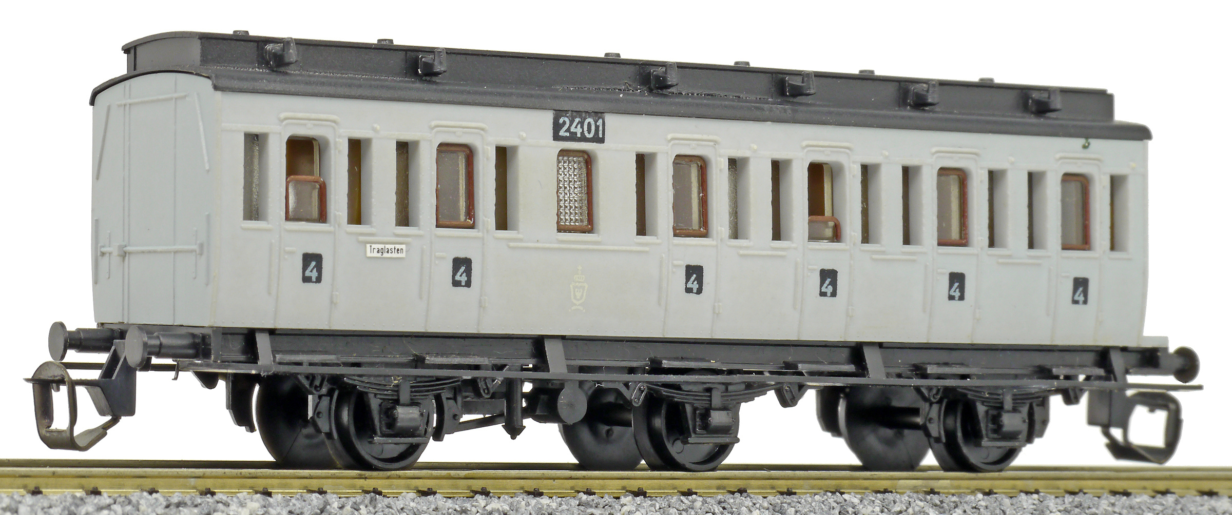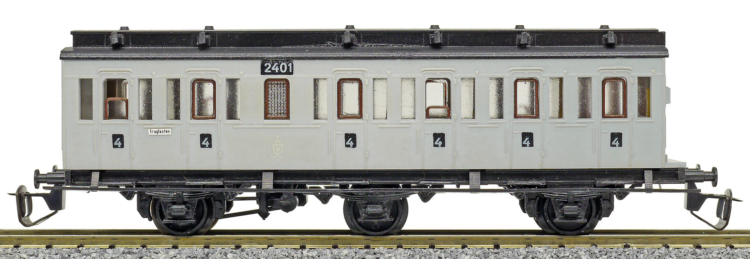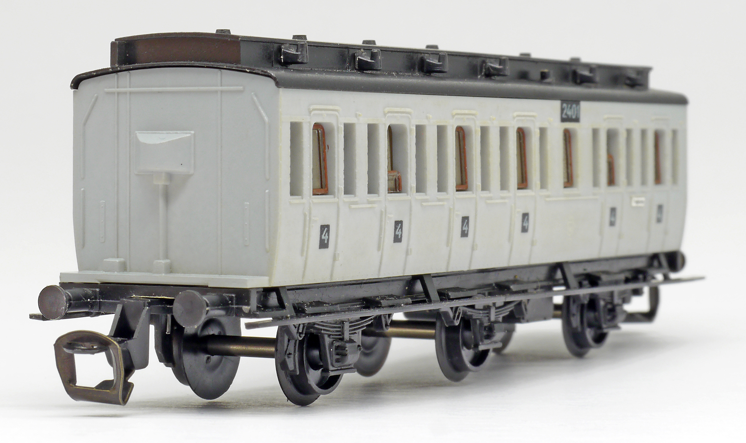 oddílový osobní vůz šedý s černou střechou 4. tř.