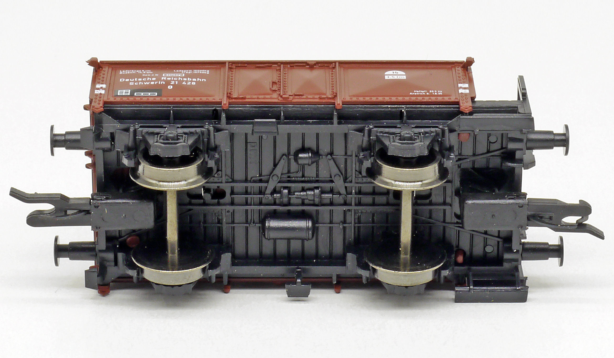 měřítko 1:120 - rozchod kolejí 12 mm kinematika krátkého spřáhla (KKK) podle normy NEM 358 61,5 mm - celková délka modelu přes nárazníky