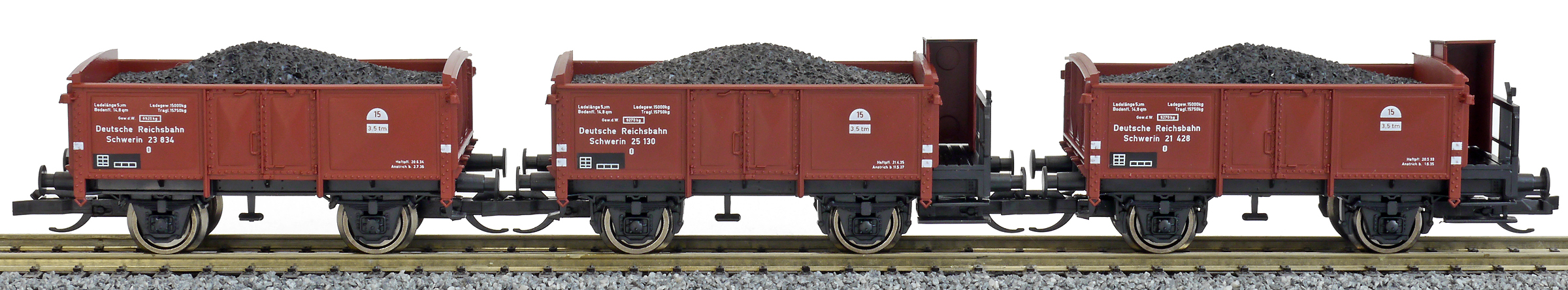 | set tří otevřených vozů s nákladem uhlí |