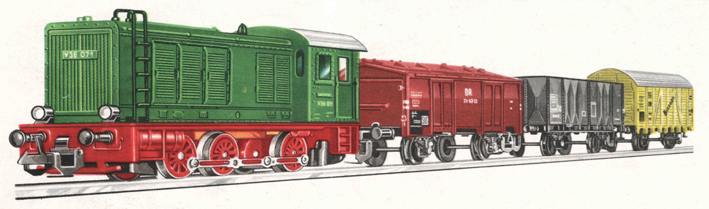 | set dieselové lokomotivy V 36 a tří nákladních vozů |