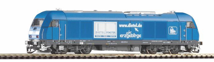 Popis   dieselová lokomotiva modrá s šedým rámem a pojezdem „Rasender Roland“