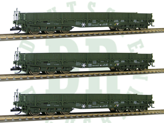 Popis   set tří zelených nízkostěnných vozů Samms